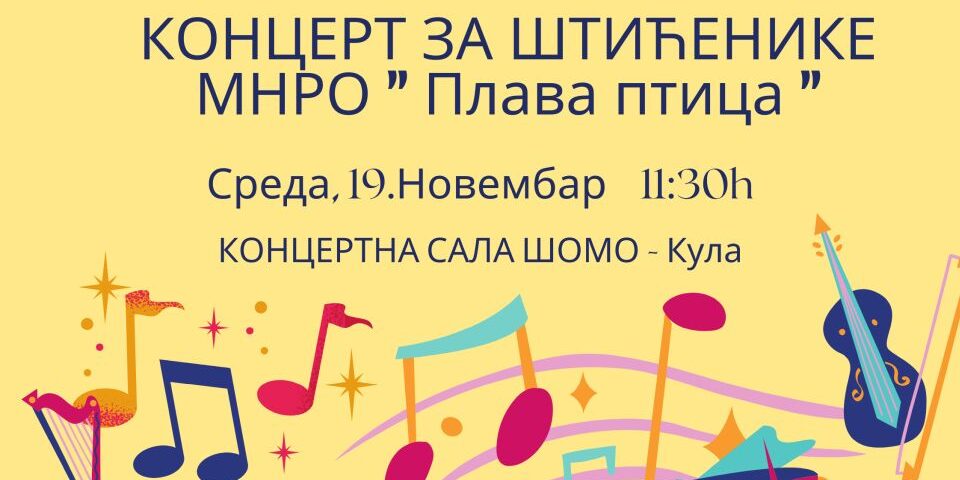 У среду, 19.11.2025. године у 11:30 часова у Концертној сали ШОМО Кула одржаће се концерт за штићенике МНРО “Плава птица“.
