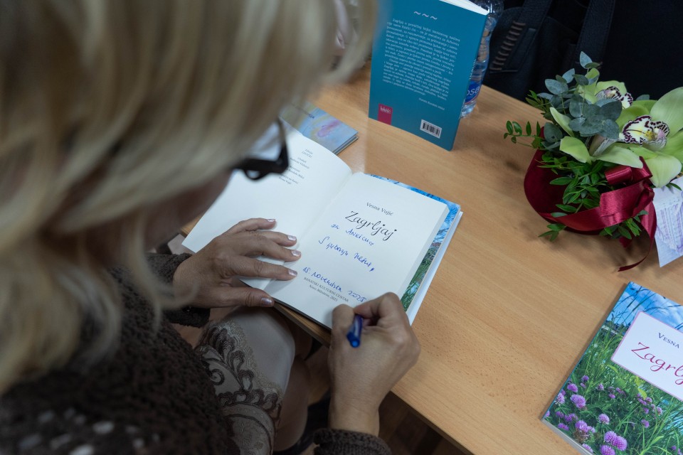 16. новембар 2025.У суботу, 15. новембра 2025. године, у вечерњим часовима у сали наше школе одржана је промоција збирке поезије под насловом ,,Загрљај“. Ауторка Весна Вујић је на непосредан и крајње приступачан начин водила публику кроз процес настанка збирке, делила своја лична размишљања о садашњем тренутку, као и о различитим животним темама. Публика је имала прилику да ужива у стиховима неколико песама, које су говорили ауторка и Кристијан Гавранић. Поетско вече било је прожето музичким програмом, у оквиру којег је наступио Поп хор Кула, са две песме, којим диригује наша наставница Милица Алексић.
