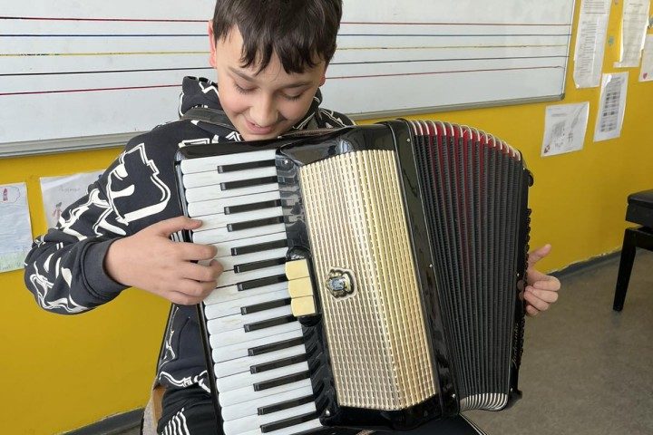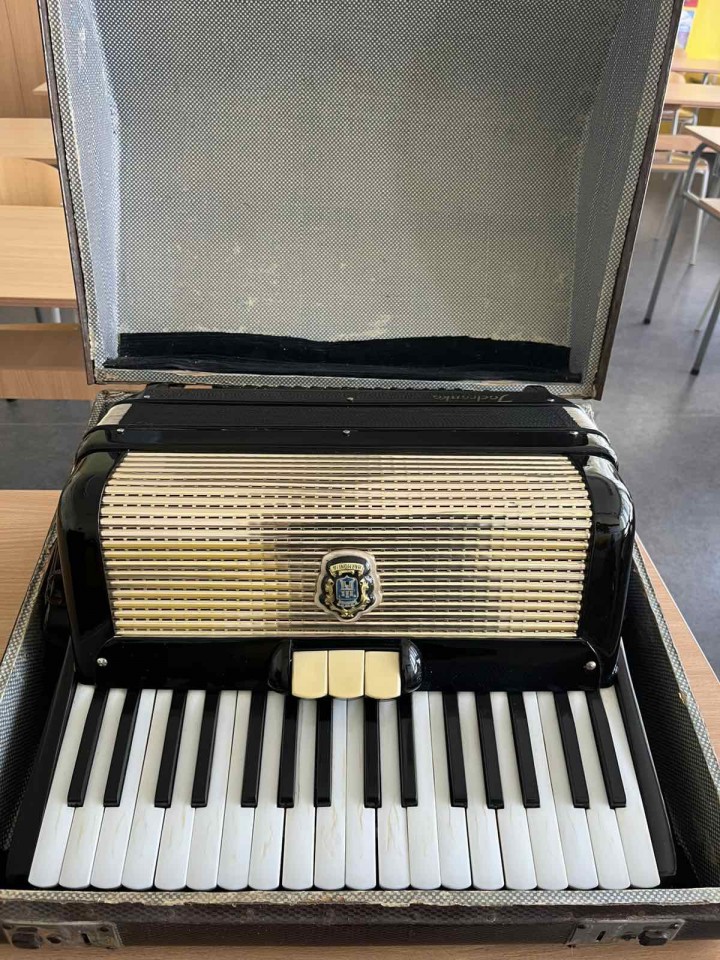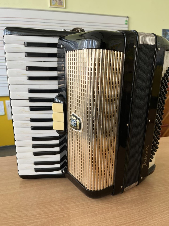 22. децембар 2025.Не тако често наша ШОМО бива даривана инструментима од стране разних дародаваца. У главном су то некадашњи ученици музичке школе, који већ остарели желе да поклоне свој инструмент школи чији су некада били ученици. Неретко то буду и родитељи наших садашњих ученика а понекад баке или деке… Овог пута у Издвојеном одељењу наше ШОМО, у Црвенки, бака наших ученика Максима, Николе и Лава Арваји поклонила је хармонику марке Мелодија, модела Јадранка, са 80 басова с напоменом да ју је и сама добила на поклон од свог рођака Пере Грубора. Будући да бака поседује своју личну хармонику, јер је некад и она била ђак Музичке школе, одлучила је да ову другу поклони нашој школи. Захваљујемо се баки Арваји и бившем власнику хармонике Пери Грубору на овом поклону!