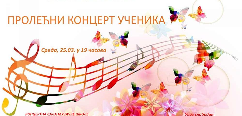 У среду, 25.03.2026. године у 19:00 часова у Концертној сали музичке школе одржаће се пролећни концерт ученика.