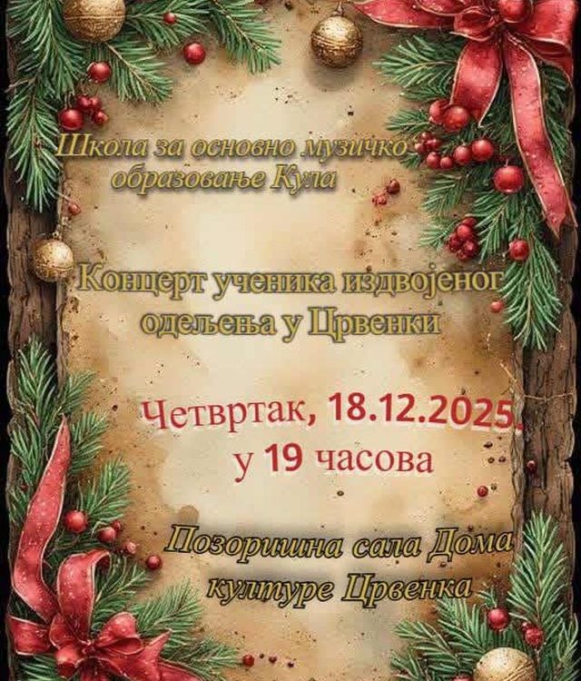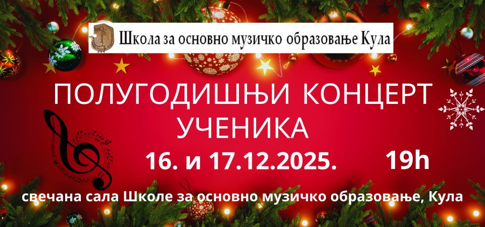 У среду, 10. децембра 2025. године у 18:00 часова у Свечаној сали ШОМО Кула одржаће се јавни час одсека хармонике. Улаз слободан.